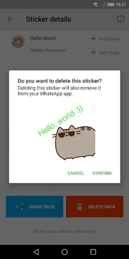 You can delete stickers you do not want to use anymore by choosing a single sticker to delete or the hole stickerpack.
