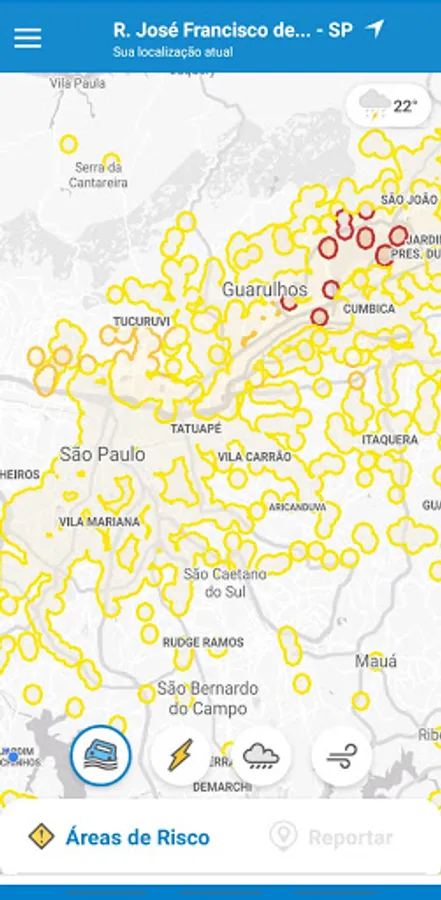 In the occurrence map, points of flooding and rain are shown, sent by the users of the application and each reported occurrence is available for 1 hour.