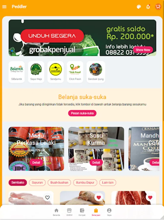 A traditional market goods shopping application, you can order your daily needs through this application, you can choose the vegetable seller you want to deliver your order.