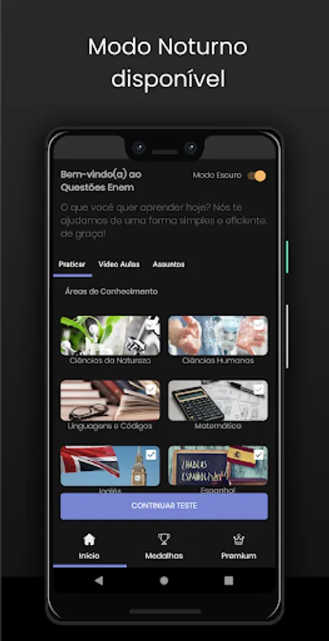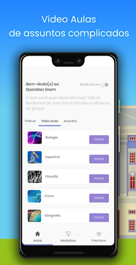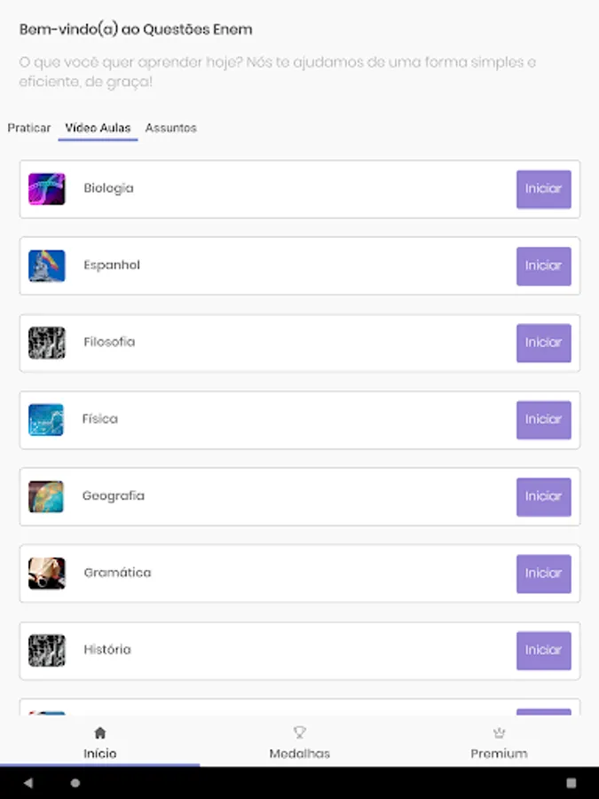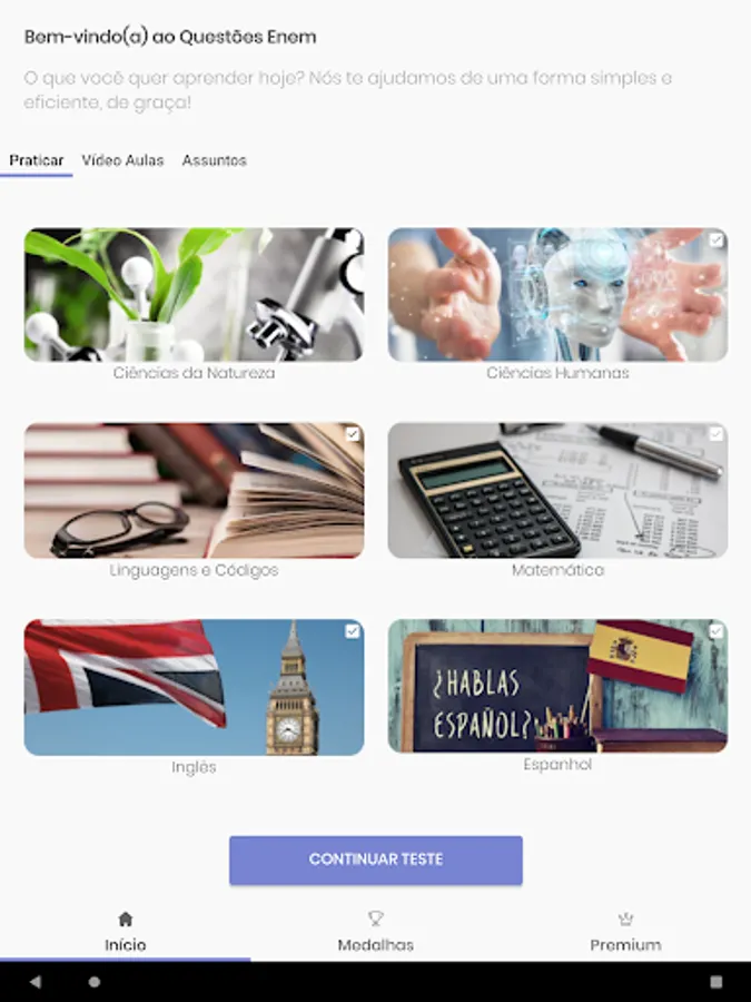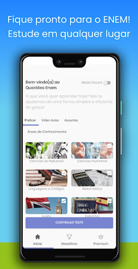 With this app you can build a simulation, follow your results, essay topics, all the ENEM tests already taken, it's like an ENEM course for you to reach a thousand, feedback for all the tests, templates and mec results, inep answers, it's a full virtual course.
