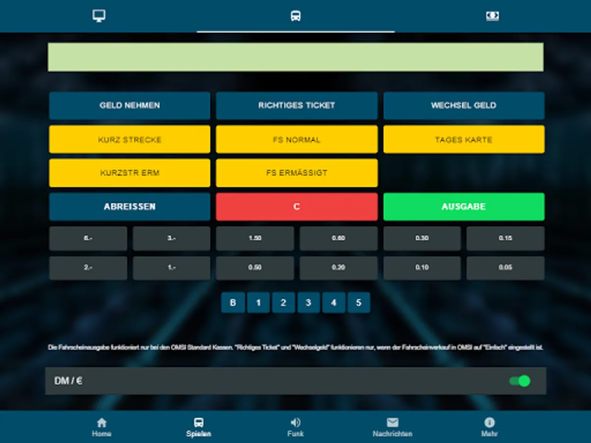 With the control center simulator assistant you also have a mobile overview of all control center events and your ingame mailbox. If you don't have a microphone on your PC, contact the control center via radio. During the game you can also use the app while driving to operate the cash register and the IBIS and display current information (time, speed, temperature, etc.).