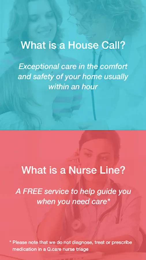 Q.care is partnered with the best healthcare providers in the market, so now you can access high quality, experienced, caring, licensed and background-checked providers either through a free “nurse triage” request, or a “house call” request where care will come to your home, hotel, or wherever you have a need, usually within an hour and covered by most insurance plans.