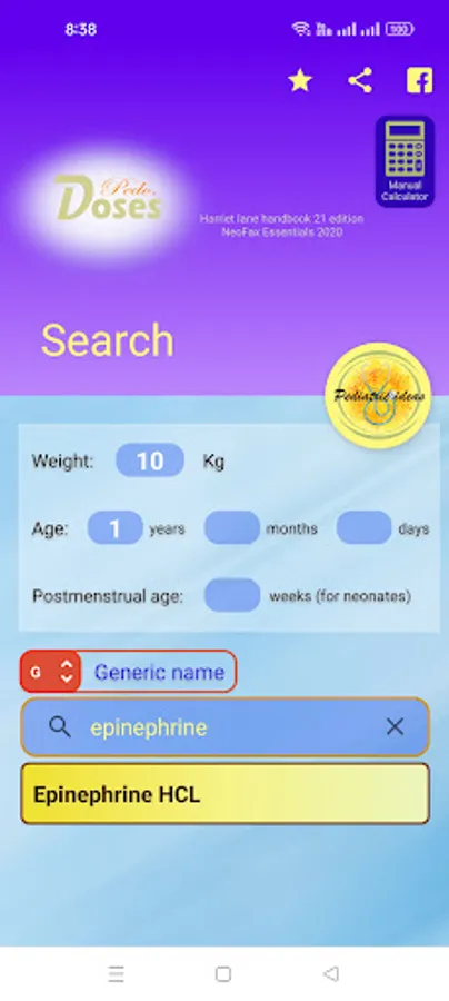 Dose recommendations and a simple calculation for the common pediatric drugs. Also a mannual dose calculator is added for oral and IV infusion drugs.