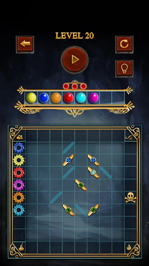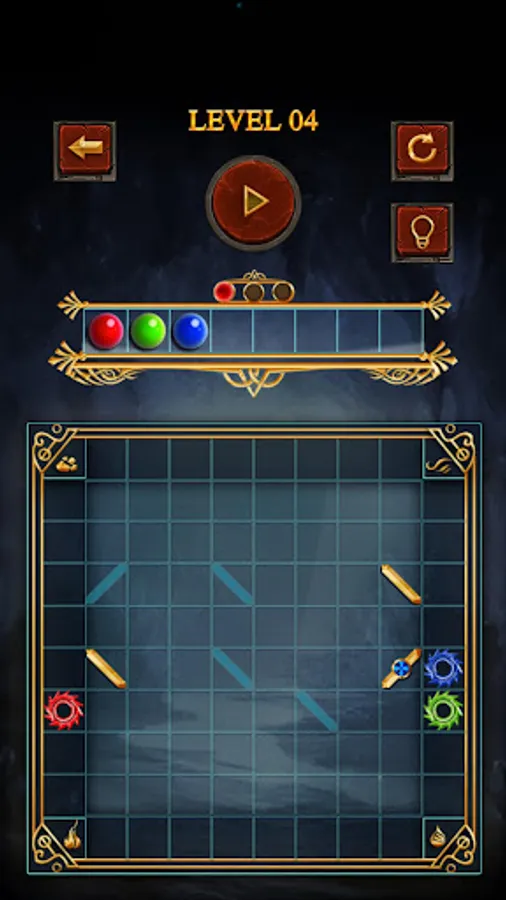 Try to place all the marbles the their own target destinations at an order, by using their reflections from couple of mirrors.