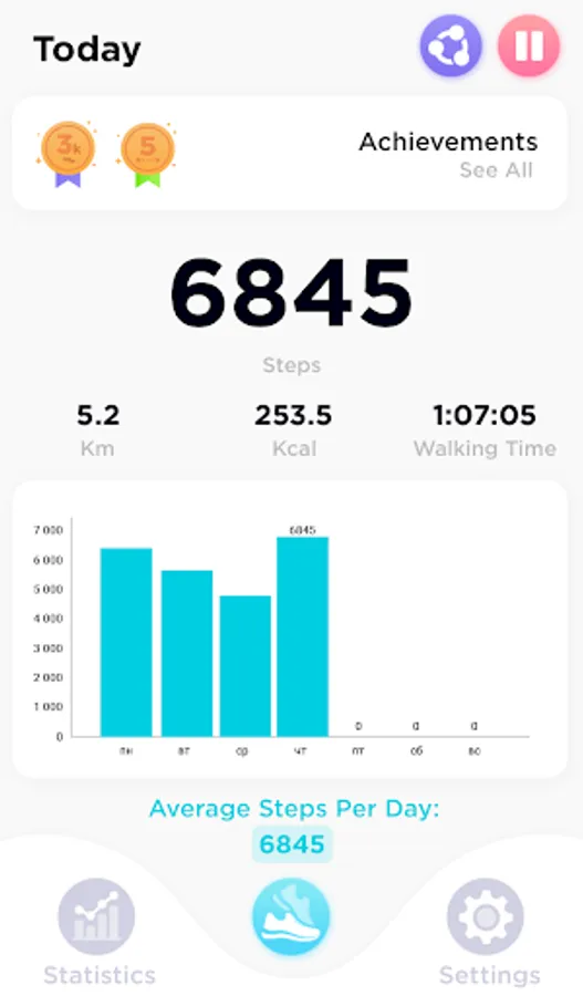 If you want to stay in good shape, you need to make several thosand steps every day. Walking is highly beneficial for your health because it trains your heart, helps lose weight, activates various processes in your body, and evern substitutes a number of other physical exercises. So let's walk, get slimmer and healthier! Analyze your daily reports to know how much you've walked and what distance you've covered.
