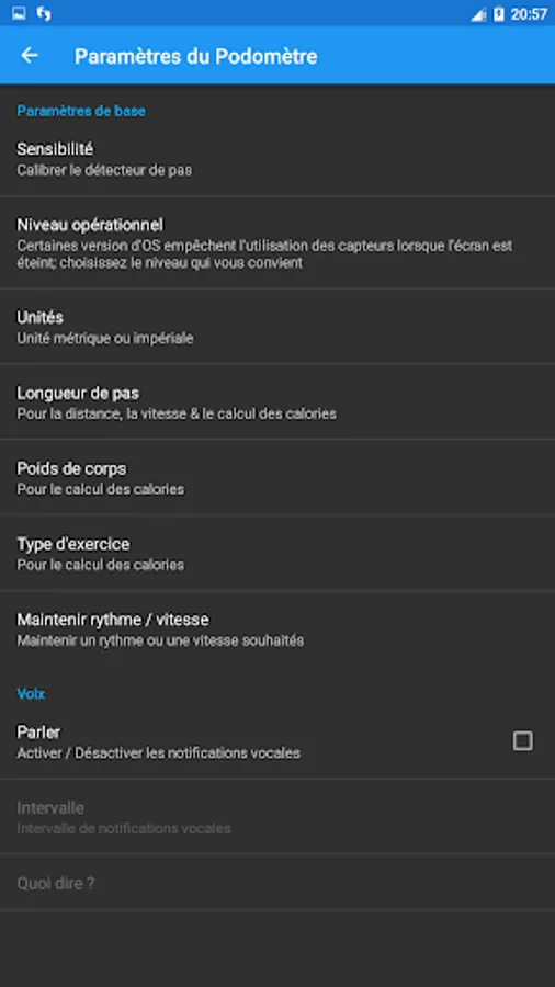 A lof of configuration settings are available letting you to adapt Pedometer to your needs :