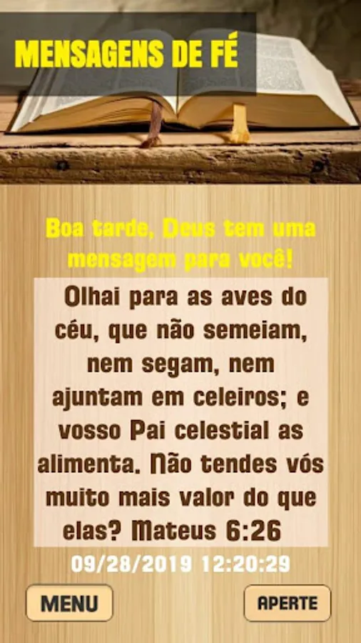 APP MESSAGES OF FAITH, CREATED FOR YOU TO GET MESSAGES FROM GOD DAILY, EVERY DAY SEE A MESSAGE FROM GOD TO YOUR HEART, TO GET CLOSE TO THE CREATOR! COMING UPON MORE APP UPDATES!