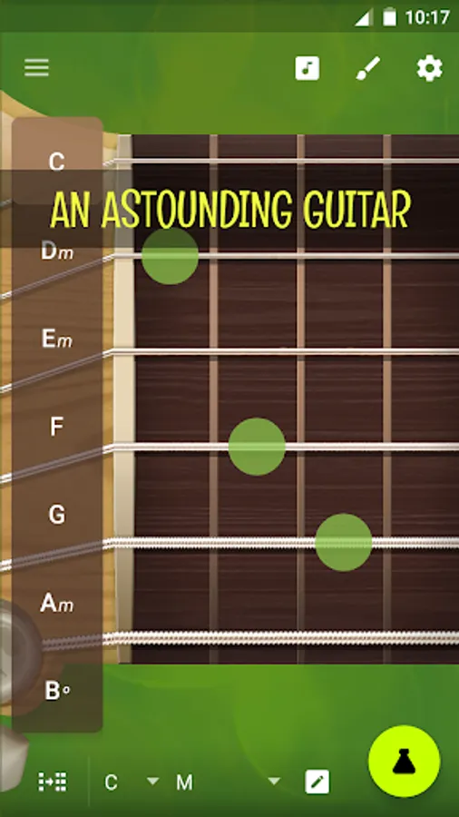 Choose a chord without having to learn finger positions and just hit the strings. You'll enjoy realistic visual effects and high fidelity sound. You can strum, play arpeggios or any other desired technique. You can play licks as well.