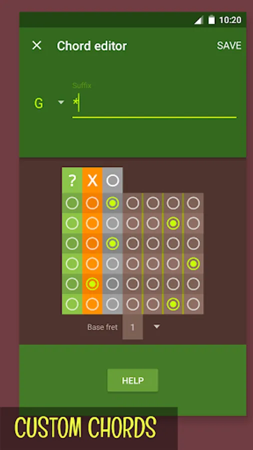You'll be able to take music as far as your imagination takes it because you have the possibility of creating your own chords with a easy-to-use editor. They don't have to be actual guitar chords, but any layout of notes whose sound you like. You'll be able to play those songs with weird hand positions, since you are not limited to standard chords. You can define free strings you can play licks on. This feature allows, for example, to follow a tablature with much more fidelity.