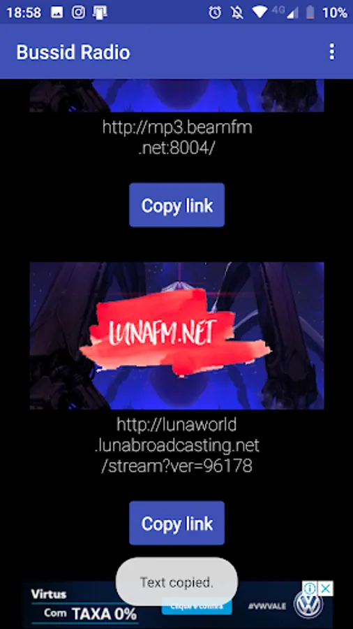 Our app is very simple and practical. It fits perfectly with the radio function inside Bus Simulator Indonesia. Just choose a radio within the app and click 'Copy link' to copy the radio address. Then just paste the address into the game.