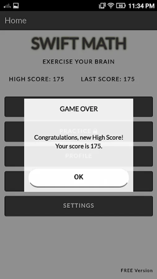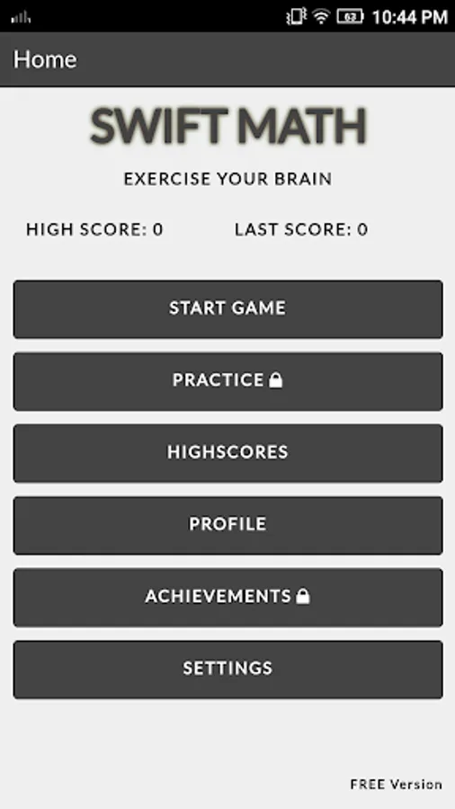 Swift Math Game Free is a fun game to play while developing you math skills. You can check your Profile to see basic information about your progress. Unlock all features of the game buying the full version of it, which includes achievements, full profile with charts and statistics and practice mode.
