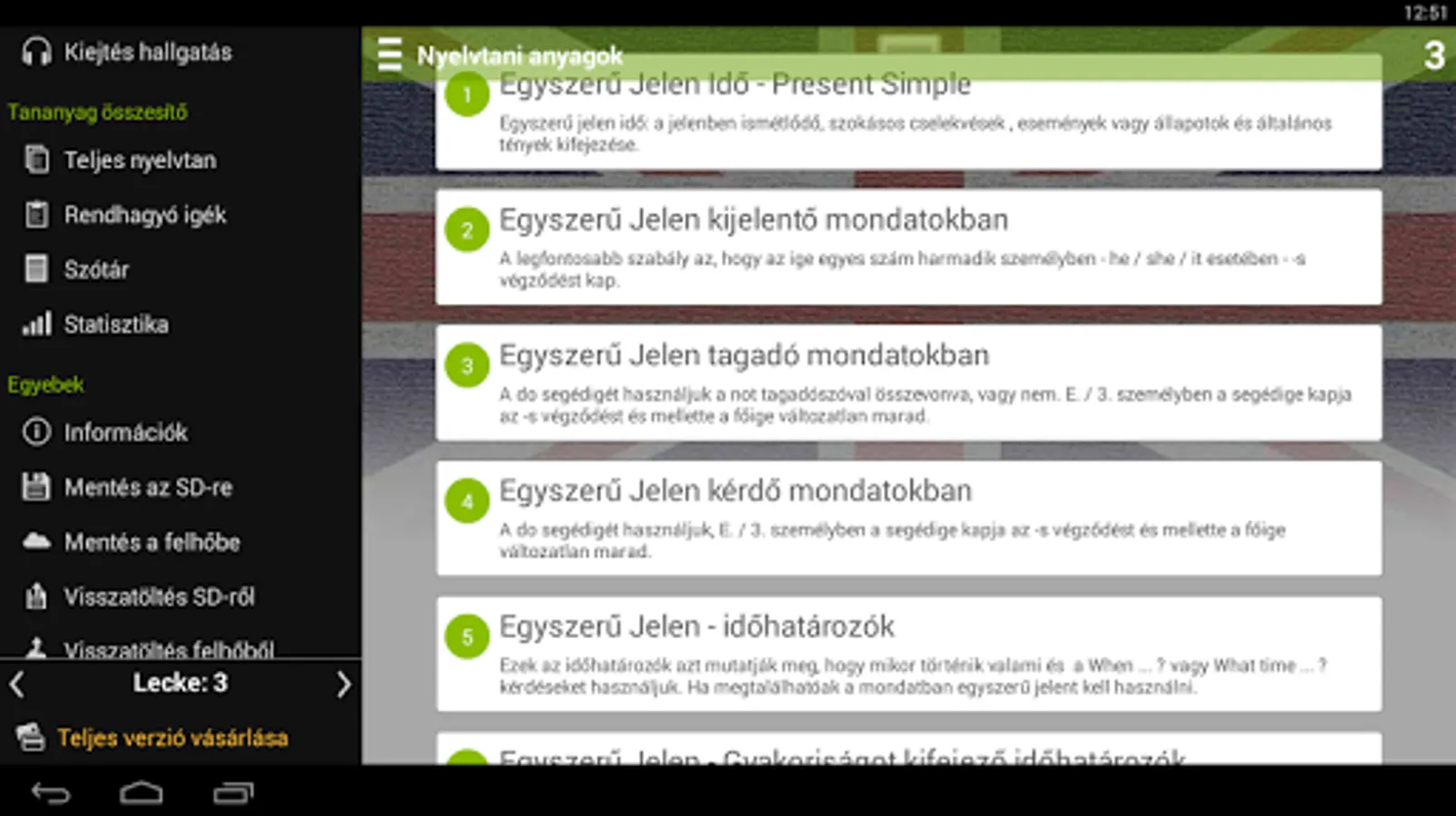 The tutorial is a specialty that every sentence contains a glossary as well as the grammatical knowledge required to create a sentence. Tap any word in the vocabulary with your dictionary, the program automatically searches the selected word you can see in other reports as well. The dictionary contains about 50 thousand words party.
