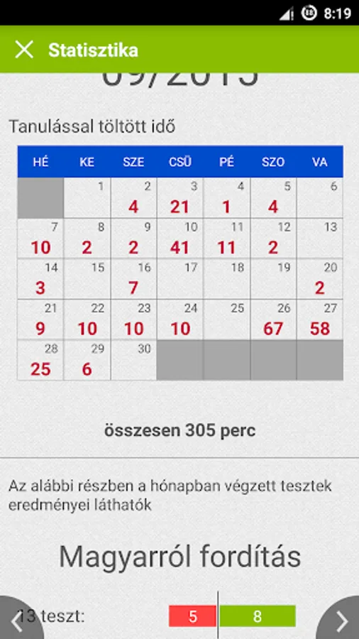 If you already feel like you've learned a sheet sentences practicing, practicing and testing the result. To do this, select the left menu to the test daily, from Hungarian translation, english translation, sparked translation, listening comprehension, spelling it out that is their wish. For these you have to guess the correct version, and then you can check right away. You can set the original sentences in random order, or would like to see and would like to practice or test your skills, more options Set a time limit in which certain time has elapsed, the correct answer will appear automatically. The results of the tests, the program analyzes, and those sentences is exercised more, which are more difficult to go to learn. In addition, you can display the test results using the statistics menu item, you can see exactly where it is, how much time you spent on language learning.