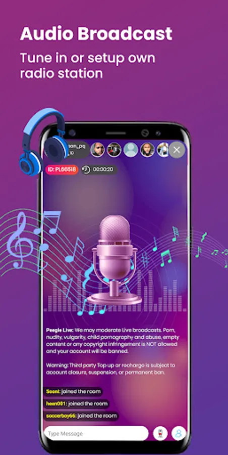 Tune in to any audio broadcastings or setup your own radio station on Peegle.
