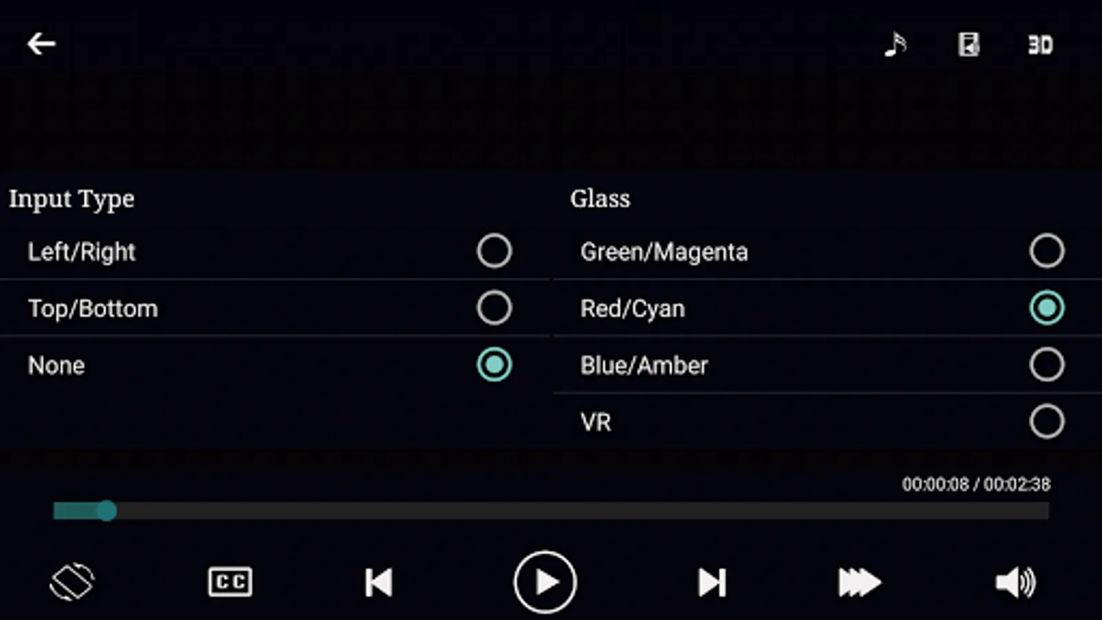 3D video player converts stereoscopic 3D content to Red Cyan 3D to watch with red/cyan 3D glass.
