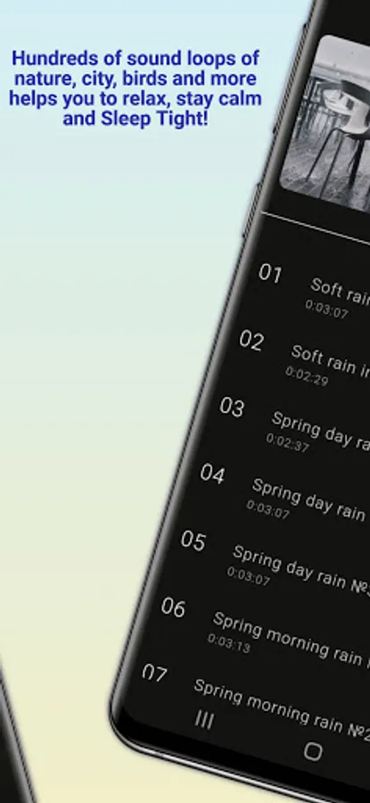 Sleep Tight is an app that helps people fall asleep by listening to beautiful sounds of nature, different locations and places all over the world! Beautiful video background will immerse you to the new level of meditation!