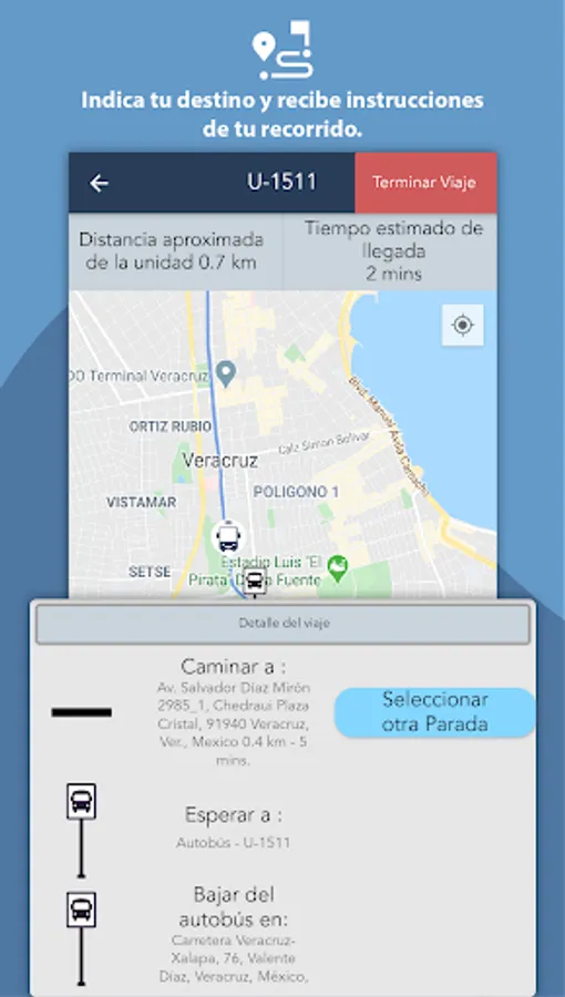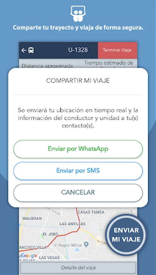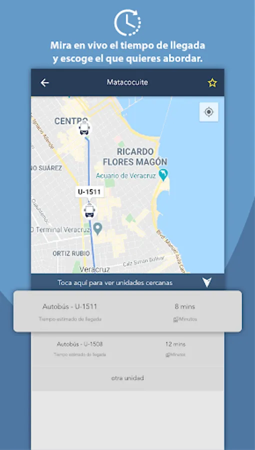 Our task is that you know with greater certainty the moment when a unit of the route you need will arrive, so you can optimize your way of moving around the city, in addition to traveling more safely, by having the option to share your trip to some Family or friend, who can see the information of the unit in which you are traveling and your location in real time.