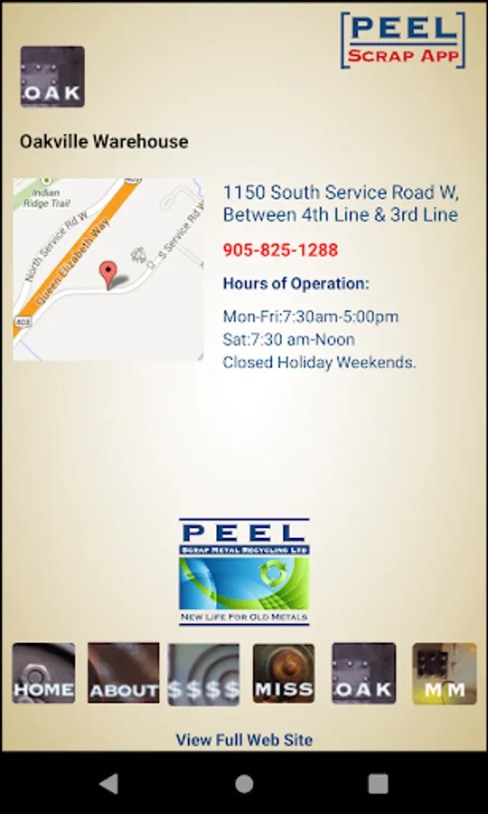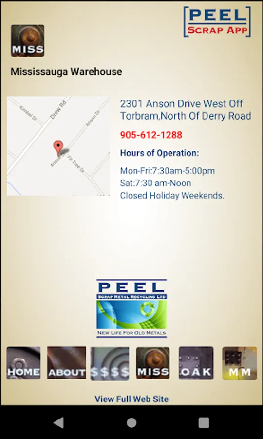 The App also features easy to access location, hours of operation and contact information for Peel Scrap’s Mississauga and Oakville warehouses, which eliminates time consuming web searching and phone calls. It also contains a link to Peel Scrap’s main web site, where customers can access information on their services and a complete list of metals and scrap items they purchase.