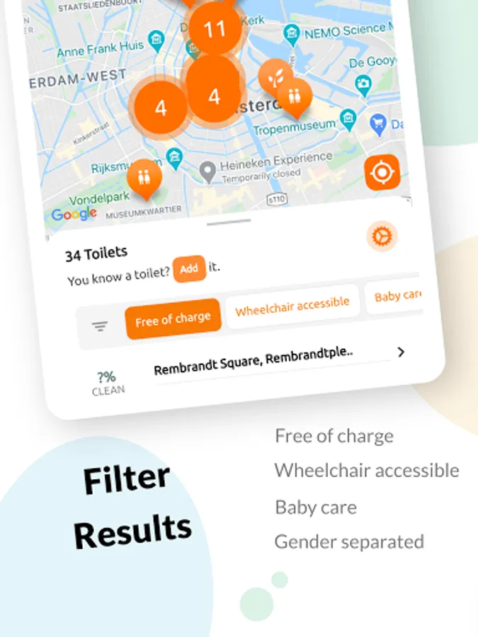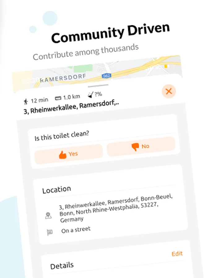 NOTE: Currently, the community has more than 100K toilet locations worldwide, however, there are still many small places and cities where locations are not added yet.