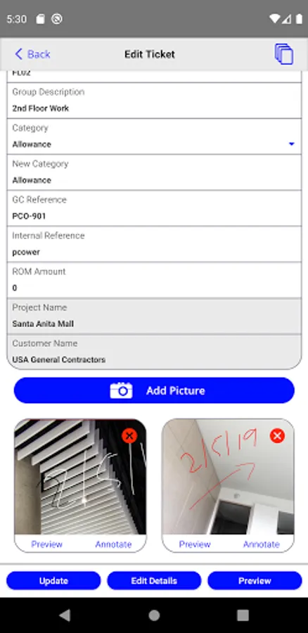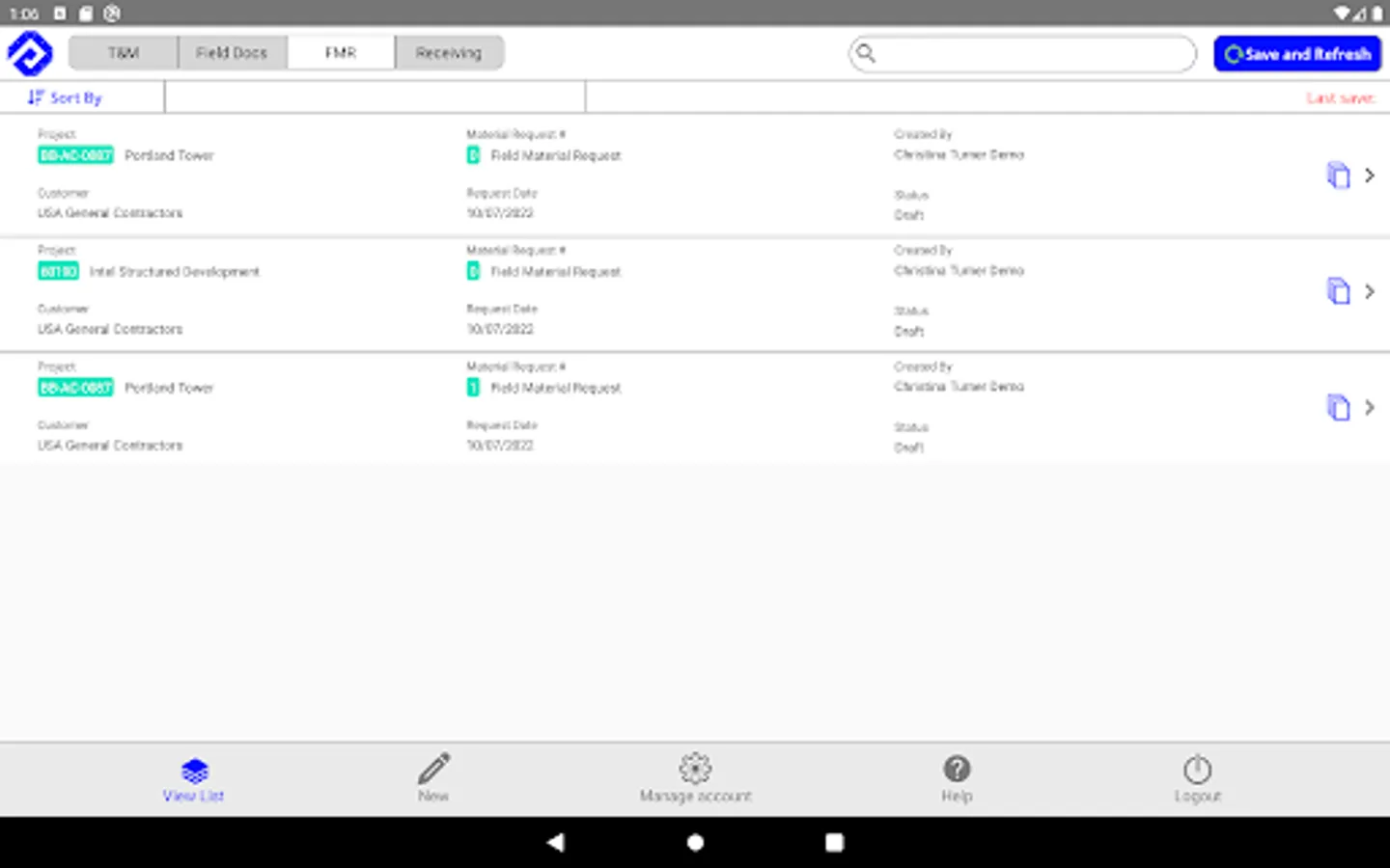 PeerAssist PROJECT MANAGEMENT subscribers can Track T&M on the mobile app, which is directly tied to the office’s ability to price and send a Change Order Request to the customer. Employee names, trade rates and materials are set up for the company and/or project so that the office can see real-time costs as they accumulate and save time spent pricing extra work.