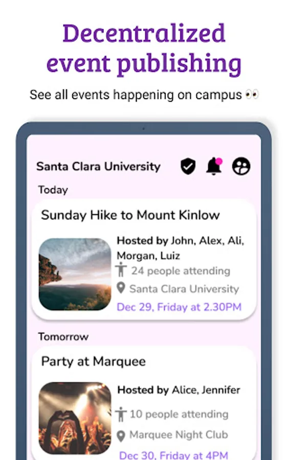 💪 Empowers students with tools to host and find interest based events on or off campus.
