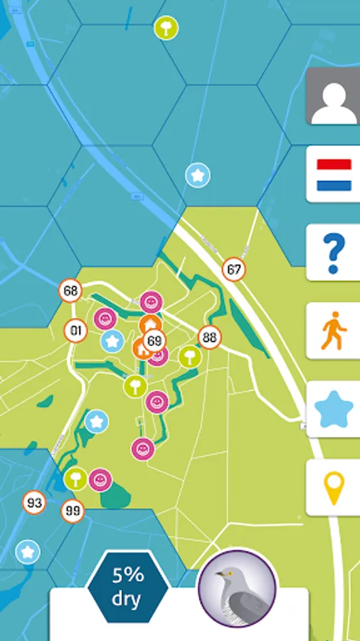 In this app the whole area has been flooded. Every time you walk or cycle in the area bits of land dry up. Will you be able to make the whole region dry again?