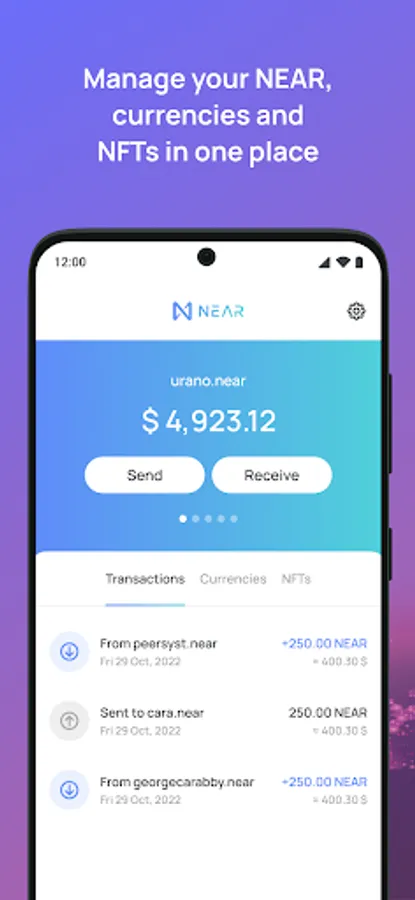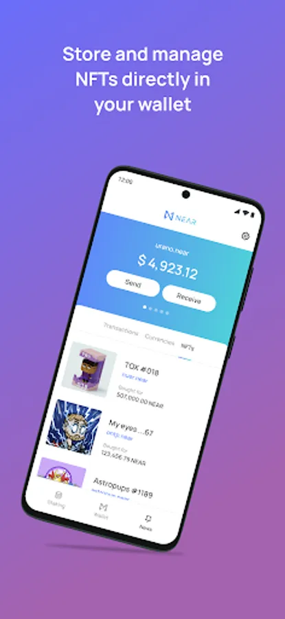 Staking rewards: Stake your NEAR and earn rewards directly within the app.