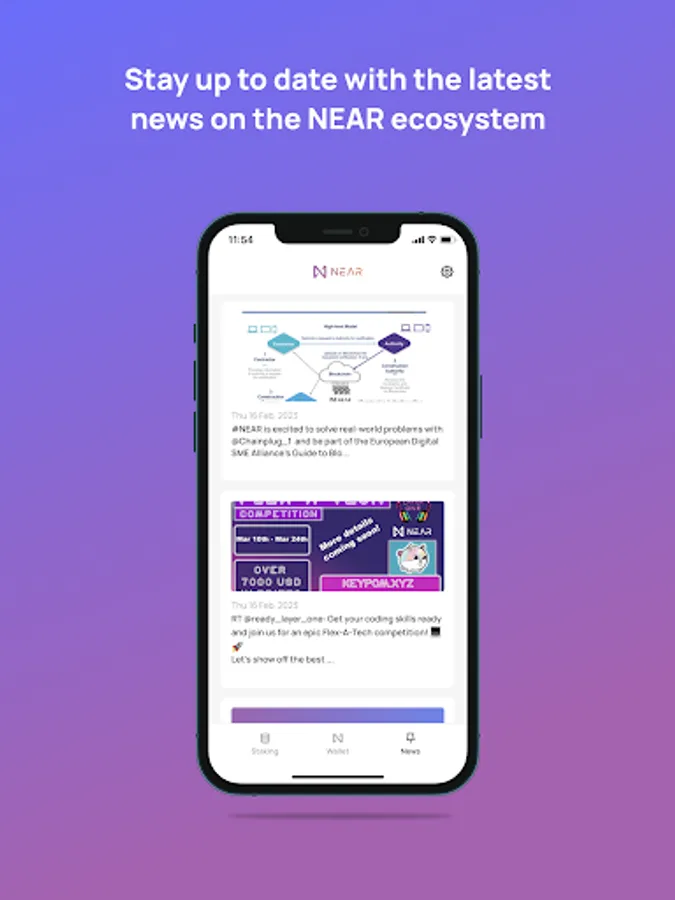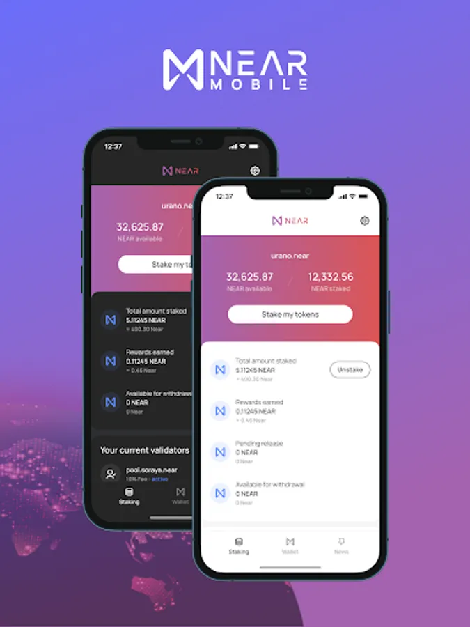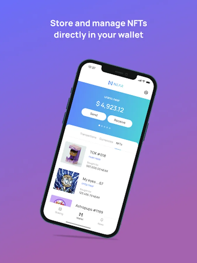 NEAR Mobile is the ultimate non-custodial mobile wallet for securely storing, managing, and transferring your NEAR tokens and other cryptocurrencies on the NEAR blockchain. With NEAR Mobile, you can easily create accounts, reserve NEAR IDs, view your tokens and NFTs inside the app, stay up to date with the latest news, stake your NEAR and earn rewards, and interact with other dapps on the ecosystem - all in one user-friendly platform.