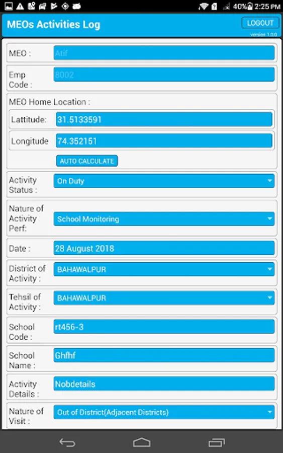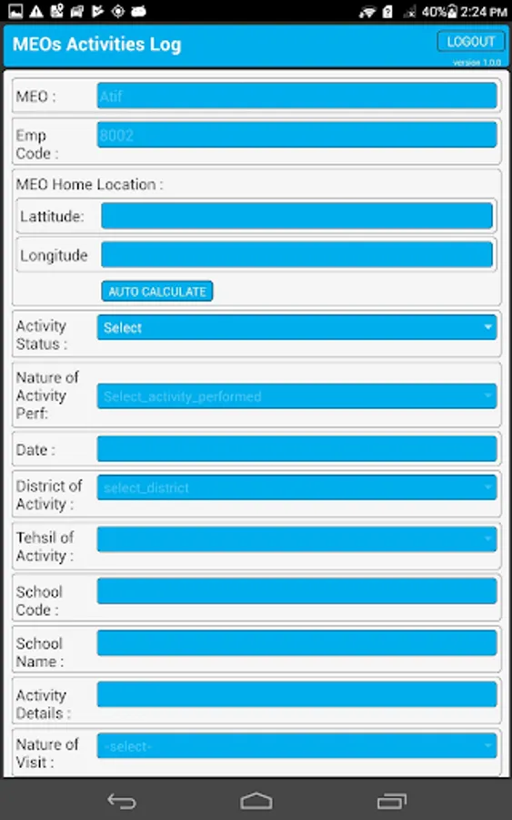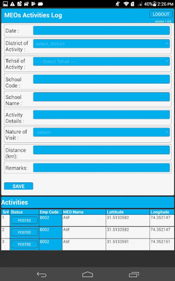 MEOs activity logs offline and online handling in field.