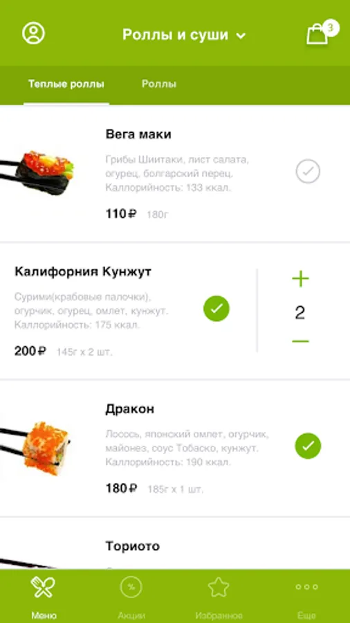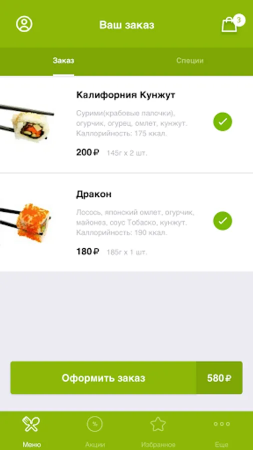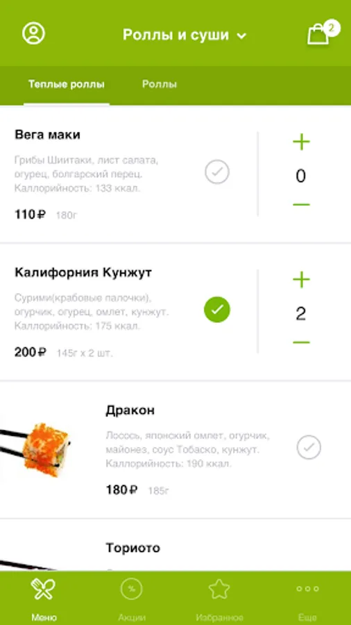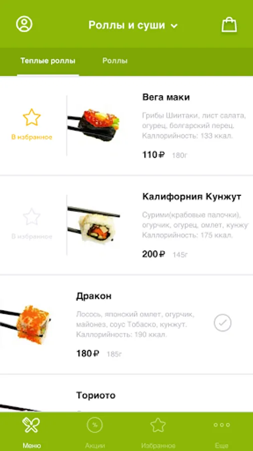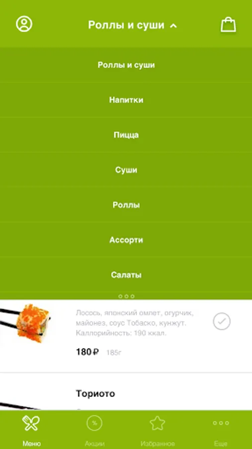 The application is designed to order sushi / sushi rolls in Akira Saratov studio.