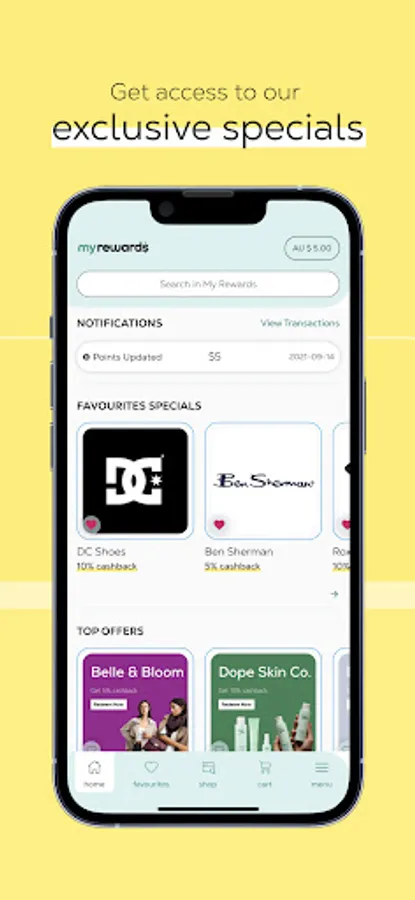 2. Keep up to date with the specials on your favourited products, top offers, and featured brands in home and save all your favourite deals for easy exploring later by simply tapping the heart icon.