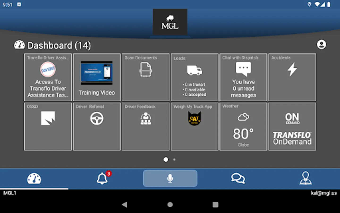 A mobile tool for MGL driving partners, that allows access to key information such as Load Details, document scanning, and direct communication with dispatch, safety, maintenance and recruiting. Detailed features listed below: