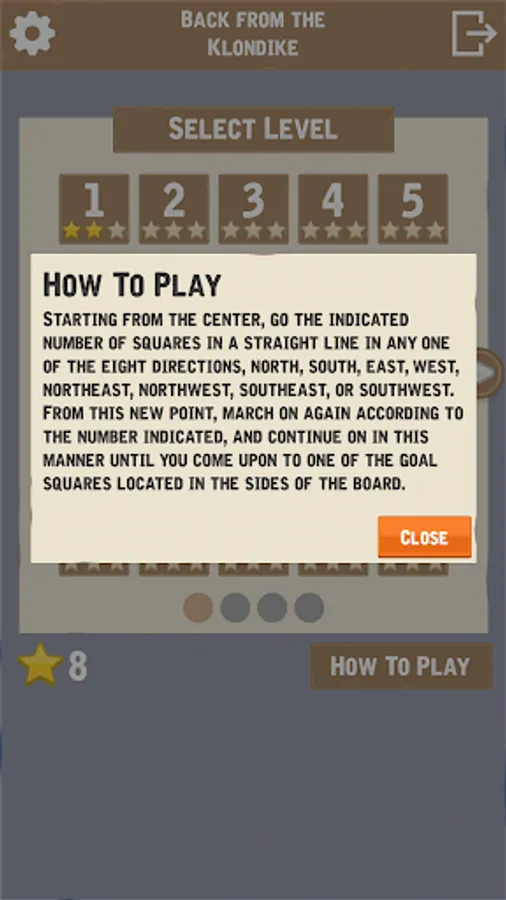 If you solve the puzzle, reaching a goal square, you will receive one star, if you do it without any help ("Show Visited" and "Show Possibles" options deactivated) you will receive an extra star, if you arrive in the minimal solution steps you will receive another extra star.