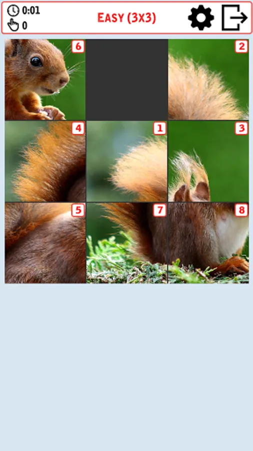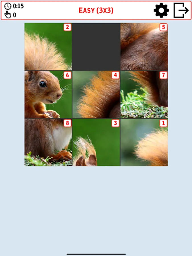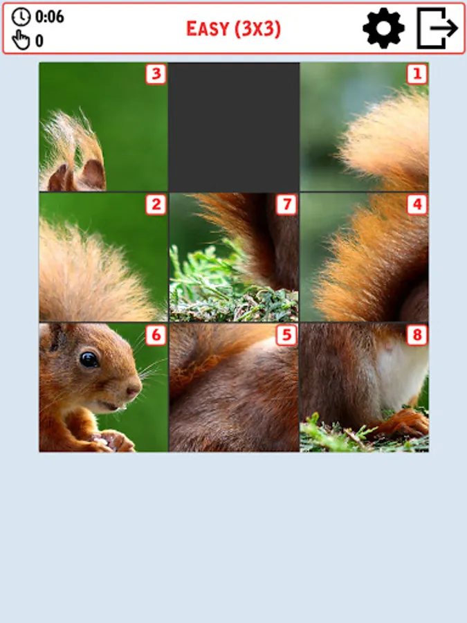 The sliding puzzle is a classical puzzle game for any ages, enjoyed by children and adults. The sliding puzzle is an easy and very funny game consisting in moving the pieces to the correct square in order to assemble the picture. The pieces can be moved to the square next to them, if it is not occupied by another piece. At the end, the empty square must be in the down right corner.