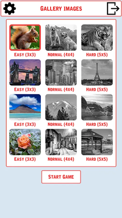 • Different difficulty levels (3x3, 4x4, 5x5)