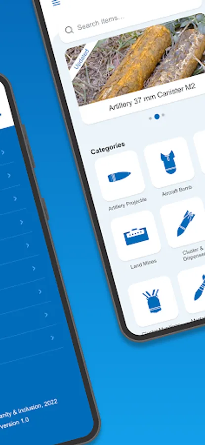 HI - EO Reference app is a digital version of the printed reference manual of the landmines-related information. This reference manual was created by Humanity & Inclusion (HI) for the safety of field experts to neutralize the landmines in Laos, Cambodia, and other countries. This reference manual contains details information about various types of Explosive Ordnances (EOs) used in the war that still poses a threat to the local community living in the region.