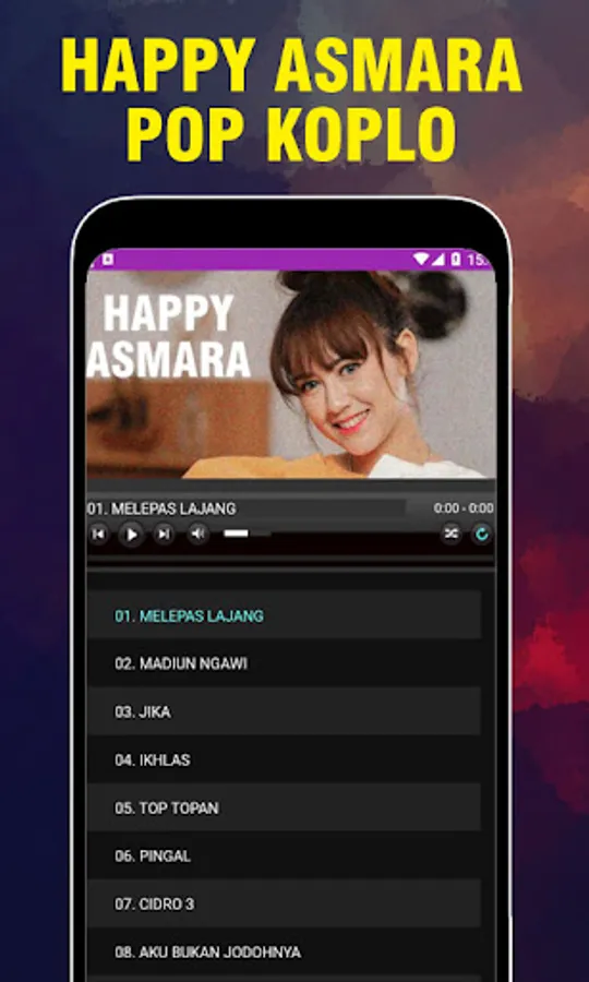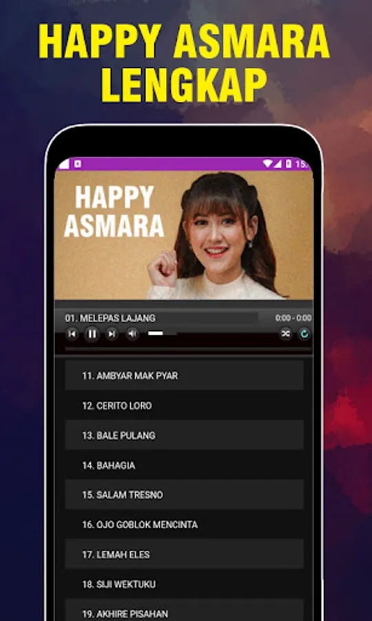 In the Happy Asmara app when you release your single, you will always get the addition of the newest Happy Asmara pop pop song, guaranteed you won't miss the Dangdut Koplo song * The collection of Happy Asmara offline album songs will be more complete and don't miss the Cidro 3 Happy Asmara Top Typhoon song, Pingal Joke, Waton Sincere happy asmara, if you can listen to everything easily at the touch of a finger, then the happy asmara album koplo song is ready to invite you to sing.