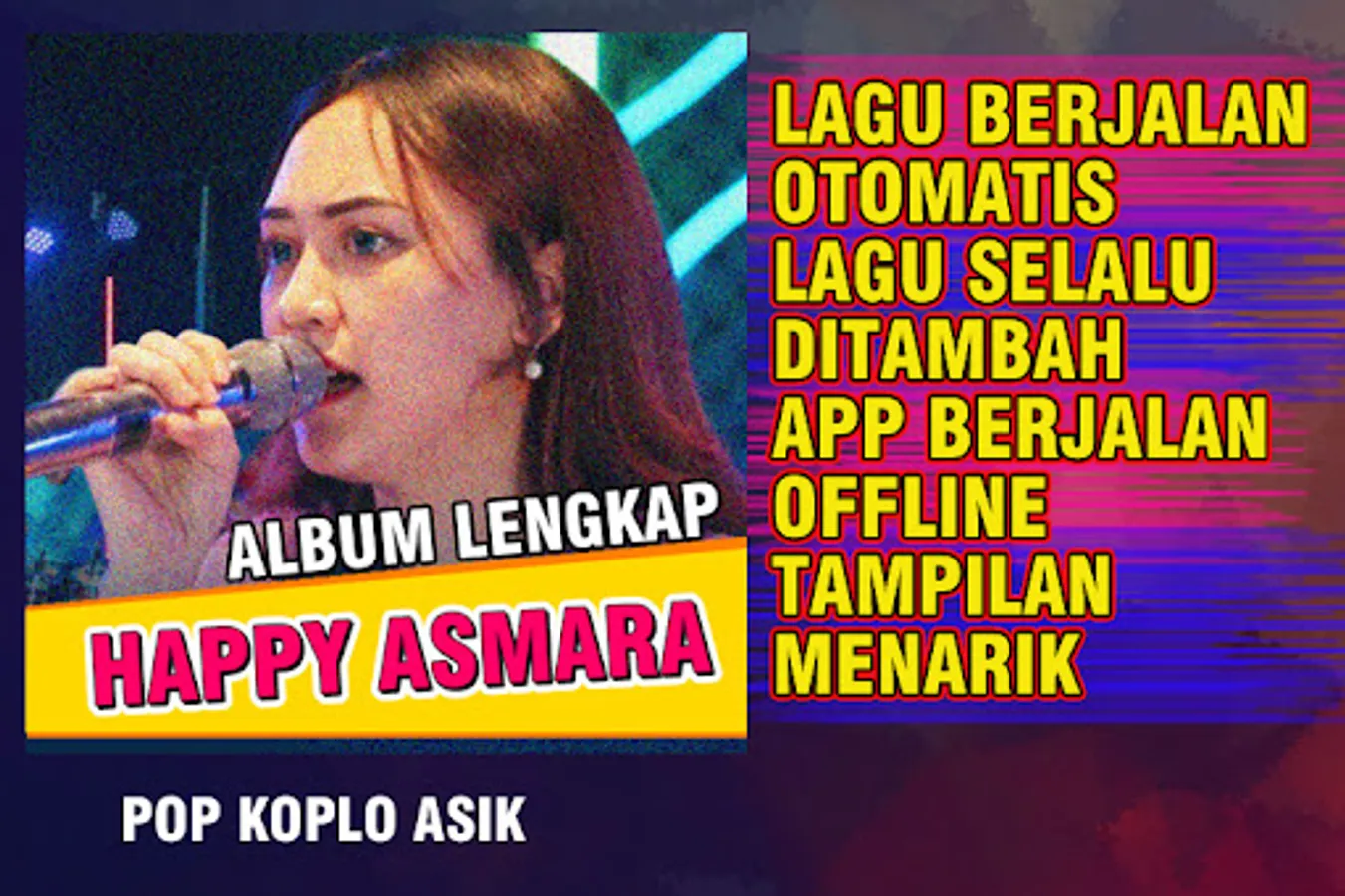 Happy Asmara Melapas Singles is ready to entertain all of you who are eager to listen to the latest 2022 pop koplo songs all day long non-stop because the full album Happy Asmara song application rotates automatically so you will be very easy to listen to and enjoy every full offline happy romance song that we provide for you. all of you. with the pop song Koplo Happy Asmara releasing your single offline, of course you can listen to the complete Happy Asmara song without fear of running out of quota and don't forget to invite your friends to dance Dangdut Koplo 2022 because this application brings the newest Happy Asmara song 2022 with the most melodious voice & guaranteed quality, you will enjoy the song Happy Asmara Madiun Ngawi Denny Caknan.