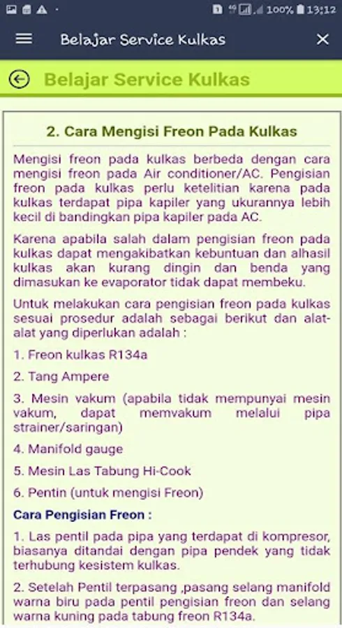 Studying a refrigeration device must start from step by step so that if you encounter a problem about a refrigerator (coolant) the tool can be quickly and precisely repaired.