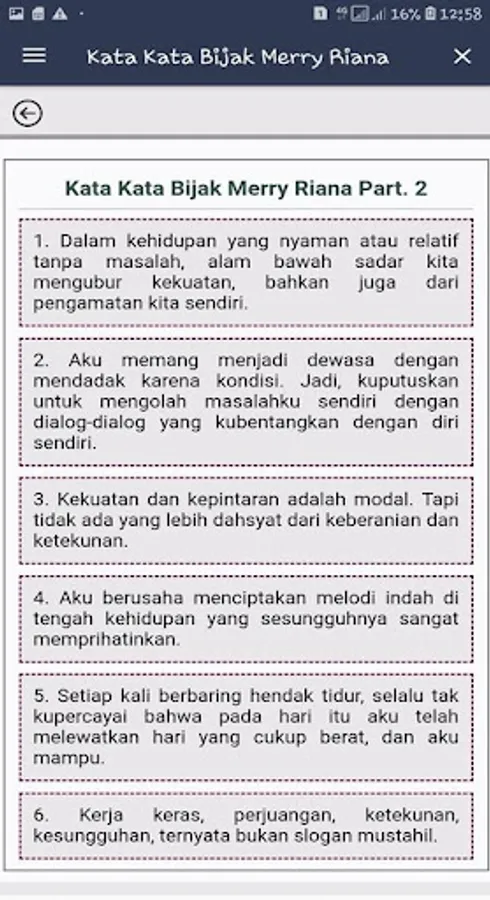 In the words of merry riana, of course, there will be a few stories about the life journey of a merry riana, which will be told by using more straightforward and very inspiring words. This is because what is a wise word usually comes from something very valuable, and for Merry Indiana, the thing that is certainly valuable is the existence of a story that really experienced during his life in a struggle that is not light.