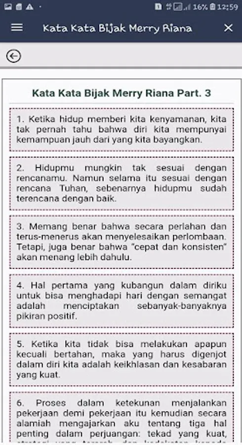Hopefully this Merry Riana Word of Wisdom application is useful for all. Amen. Please advise and criticize the development of this application. thanks.