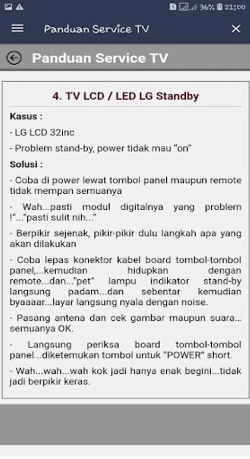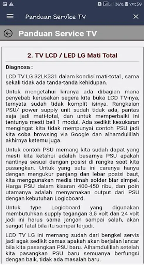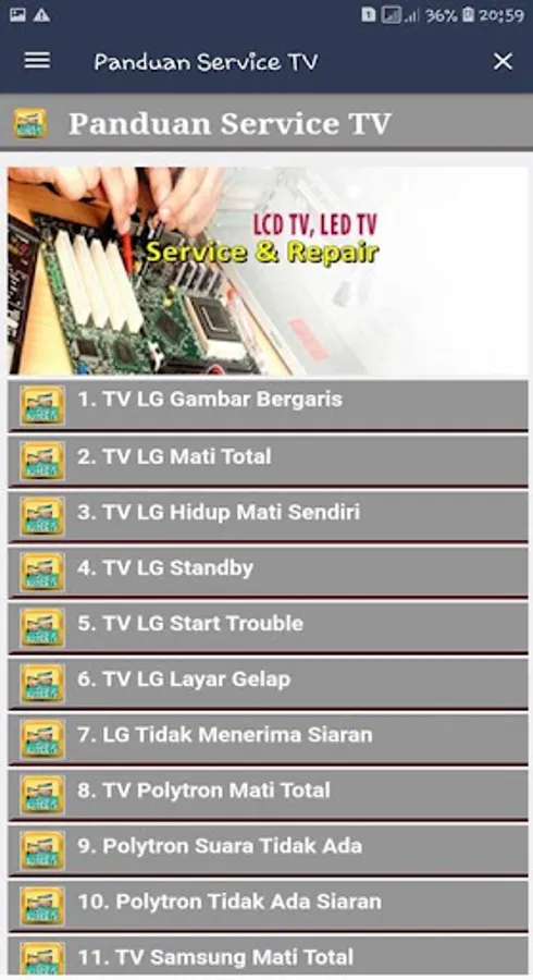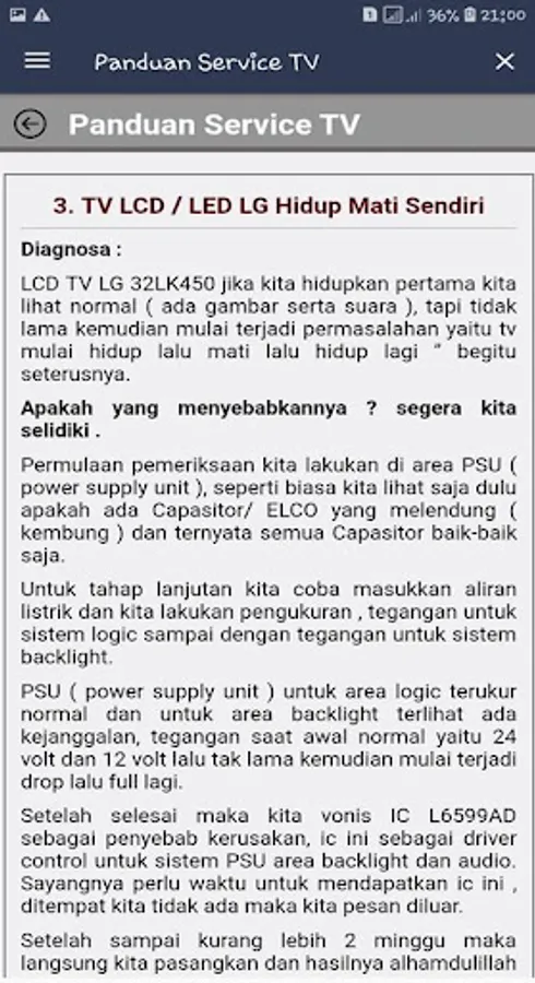 How do you learn LCD TV Service especially for beginners? We can start learning through the guidebook sold in bookstores, browsing on the internet. And for reference for all of your friends who want to learn how to service Liquid Crystal Display TV from basic to advanced, you can learn from this TV Technician Guide Application.