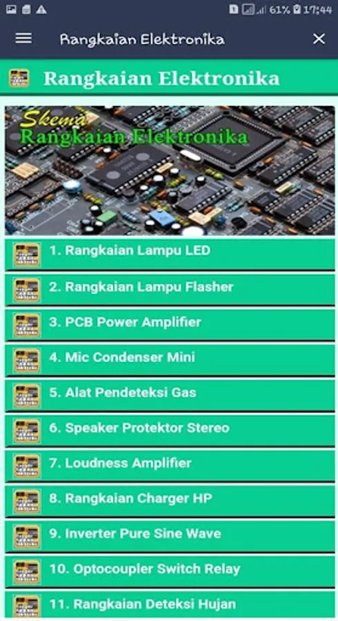Combined electronic circuits contain both kinds of analog signals and digital signals. Some examples of circuits that use both types of signals are comparators, counters (counter or timers), PLL, ADC (Analaog-to-Digital Converter), and DAC (Digital-to-Analog Converter). In this Electronic Circuit application there are several kinds of simple electronic schemes that you can know, please download this application for FREE.