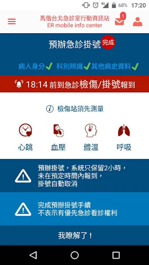 急診病人可以透過此工具在抵達急診室之前,完成預辦急診掛號程序,提供完整詳細的看診病史資料。