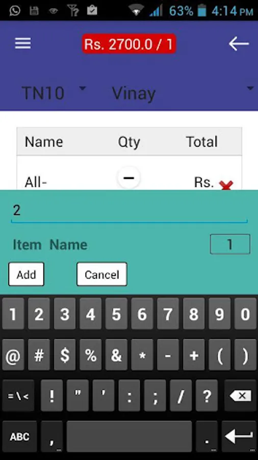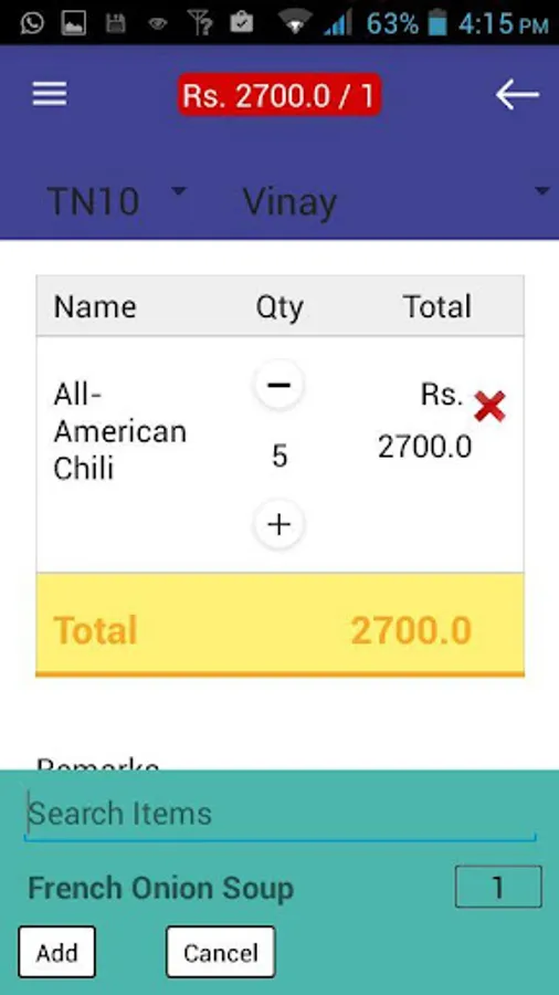 * Easy to add item in KOT.