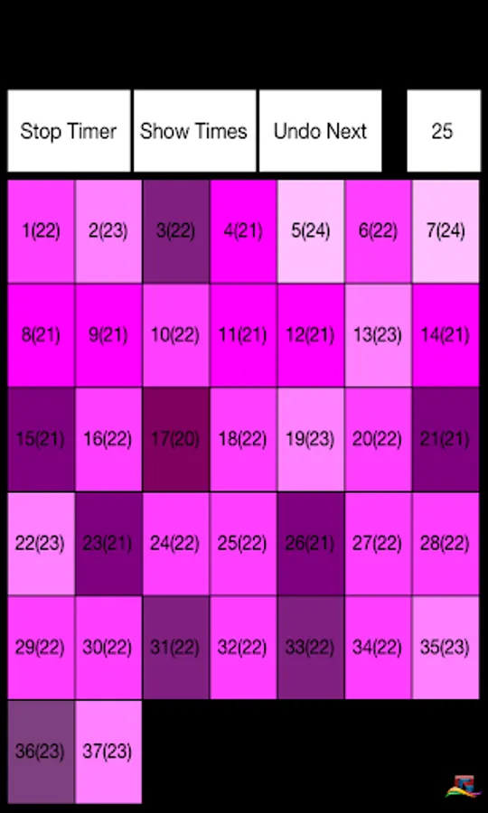 Just enter vest numbers for all athletes, start the timer and press the relevant buttons as athletes cross the line. Remaining laps are tracked and displayed for all athletes, with second-granularity per-athlete times for when each lap was finished.