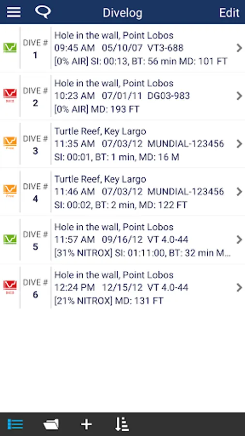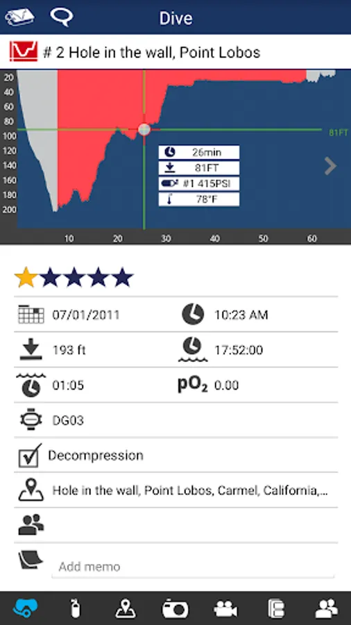 The dive detail section gives you all the information you need, including dive data, location and dive site information, tank and buddy information, gear bag, and more. Add your diving buddies and keep your personal certification and medical information on hand at all times. View your dive profile in full screen view. Add and manage your gear with easy entry forms. DiverLog offers you simple search methods to find your dives .. search by location, dive site, and even which computer you used! ...See all your dives on the world map, a unique feature we call your dive activity map! You can even keep track of your personal information, including medical and certification info. For the full version, you can now sync your dives with the new DiveCloud online dive data backup system so you never lose your dives, and always have them available, wherever you are! Connect with our developers by posting in the forum, or contact by email to support@ediverlog.com or visit the website: http://www.ediverlog.com