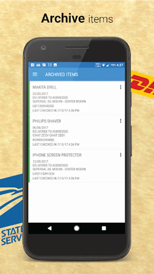 The application automatically updates the status of your items at any time specified by you, with full respect and care to your phone’s battery life.