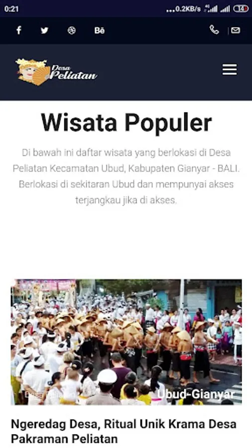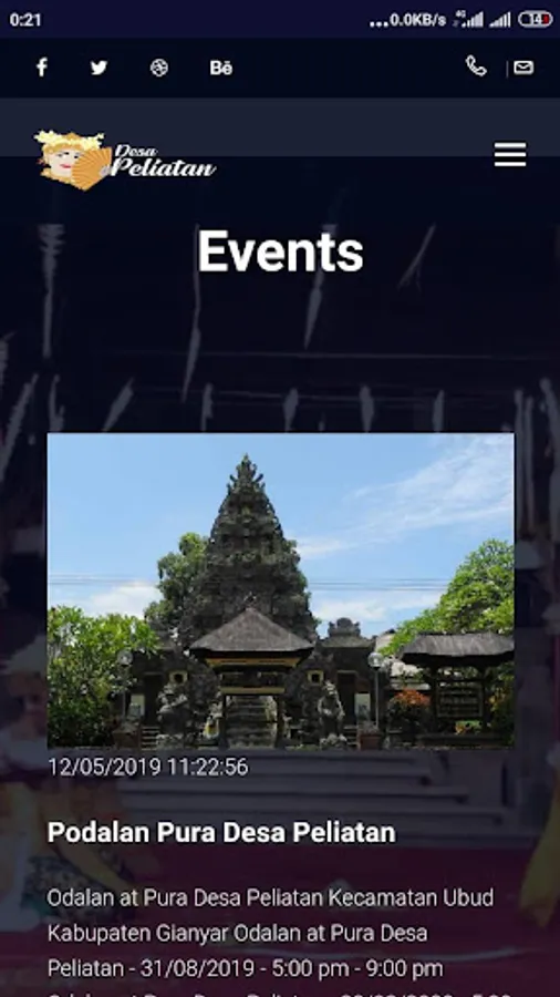 The Peliatan Village Mobile Application is intended for the service of the entire Peliatan Village Community by the Peliatan Village Government, for the sake of more advanced and intelligent development in the management of Human Resources and Natural Resources owned by Peliatan Village, especially arts, culture and tourism.