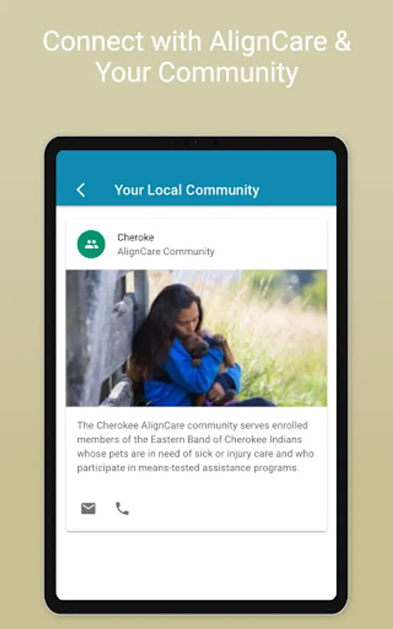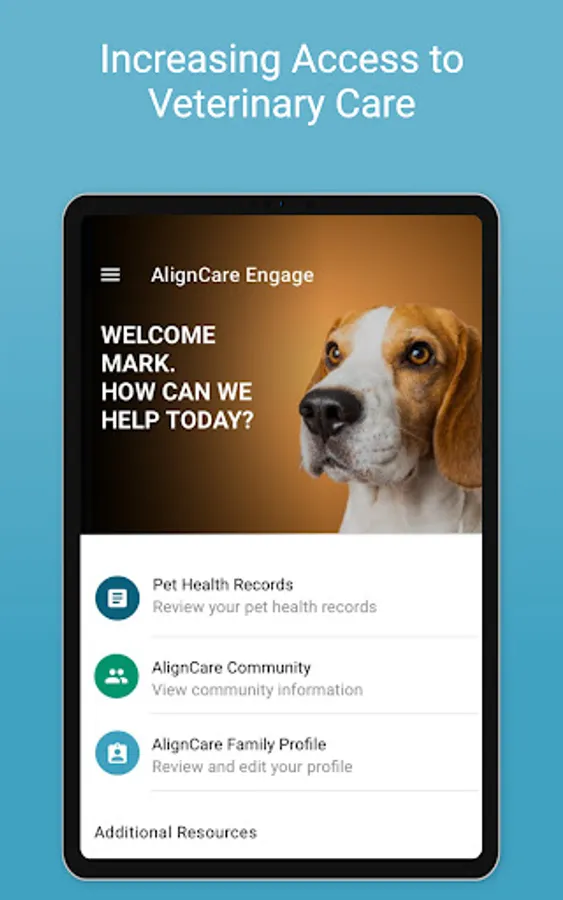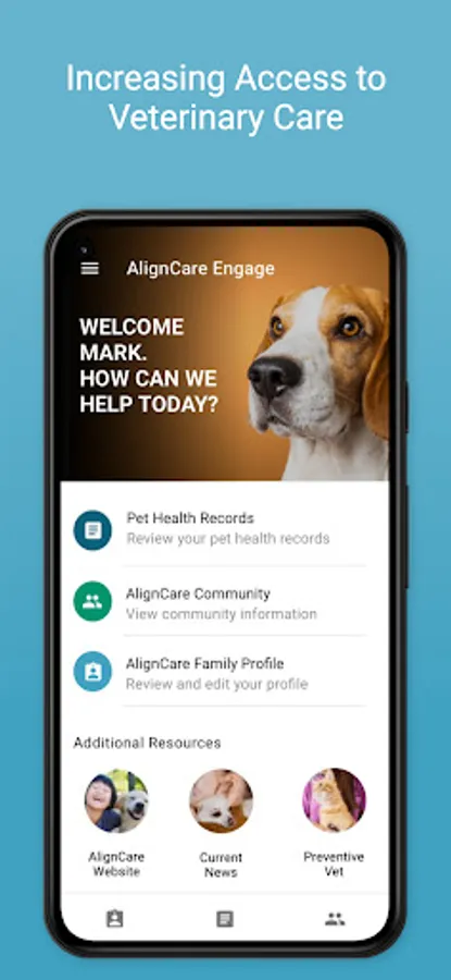 AlignCare Engage allows families enrolled in the AlignCare Health program to access information about their pet's health, and access program contacts. The AlignCare program improves access to veterinary care for underserved families. AlignCare is the national, community-funded, One Health system, that helps care for pets and the well-being of the families who love them.